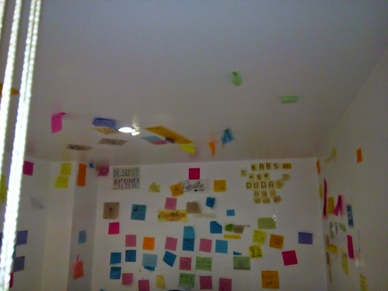 It's like a confetti exploded yet got stuck on the ceiling and walls. The fact that each and every person who came here personalized it and placed it there by themselves, little by little.